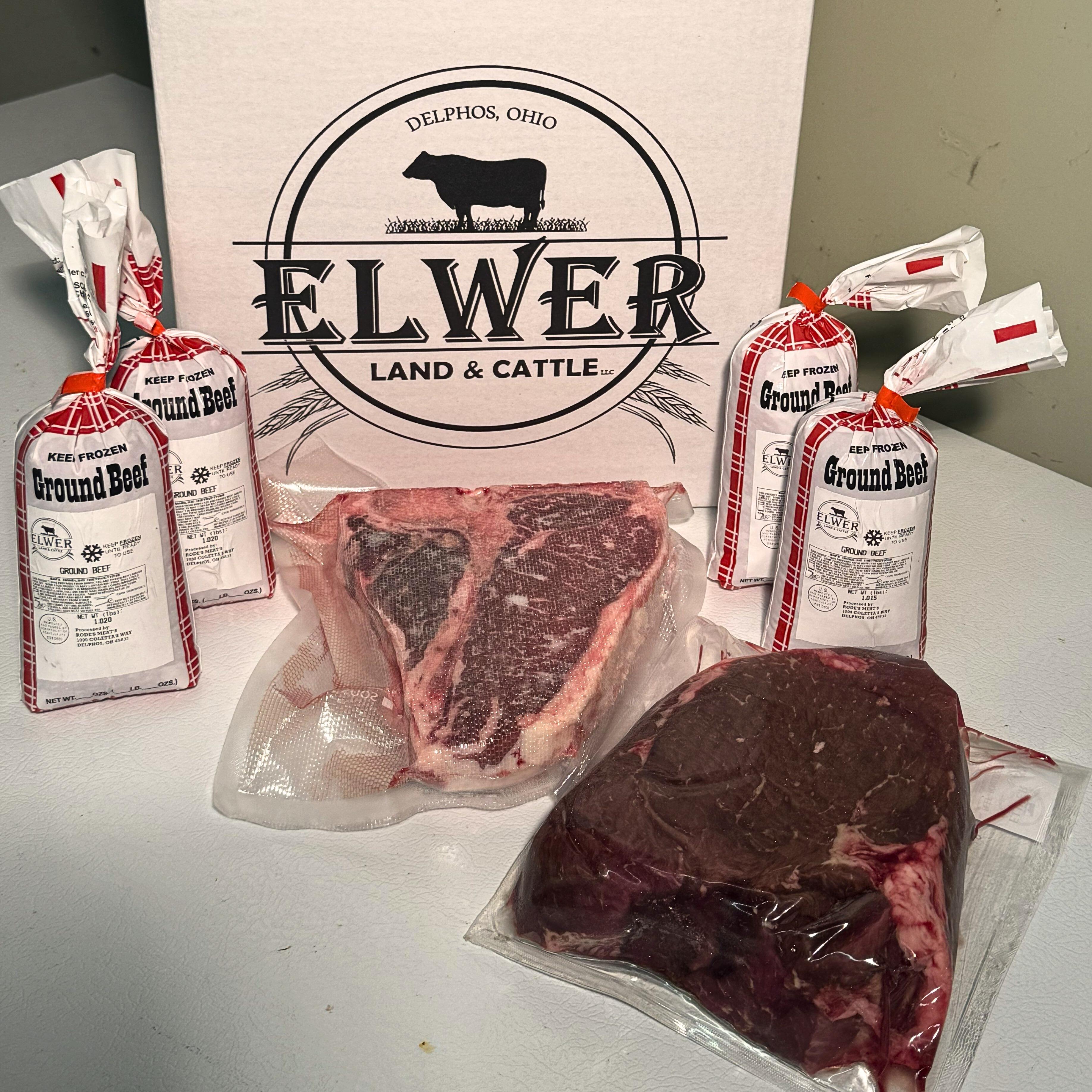 Get a taste of real farm-to-table beef : T-Bone steaks, Roast and Ground beef in a sampler sized bundle.